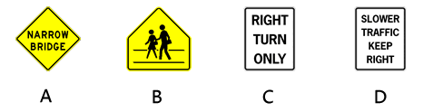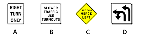 小汽车理论考试 小汽车模拟考试 题库共有300+题,每次随机刷新36题, 年满 18 岁,答对30道题以上以上即为通过。 updated 01/17/2026 1 / 36 绿灯时你接近一个十字路口,此时路口内已经被拥堵的车流阻塞了,你该怎么办 不停的鸣笛以催促那些车辆快点离开路口。 原地将车辆掉头,离开这里。 在阻塞消失前,不要驶入路口。 继续前进驶入路口,这样当红灯亮起时你就有优先权了。 2 / 36 多人共乘车专用车道由菱形标记表示,什么情况下你可以使用该专用车道呢? 仅在超车时才可以使用该车道。 只有公交车或校巴才可以使用该车道。 只有在周末时才可以使用该车道。 当车内所载乘客的人数达到专用车道标志上所标明的最低人数即可。 3 / 36 下列有关「酒精」和「驾驶」的描述中,哪一个是正确的? 如果你在喝酒后还可以沿直线行走,就表示你可以安全驾驶。 酒精会影响你的判断力和自制力。 少量的喝啤酒不会影响驾驶。 如果你血液中的酒精浓度符合法律规定,就不会影响安全驾驶。 4 / 36 雨天时路面湿滑,这种情况下驾驶者应该注意什么?: 不要和前车保持太远的距离。 注意更换老旧的轮胎,避免抓地力不够。 不时的鸣笛提醒路旁的行人小心。 尽量不要急转弯和急刹车。 5 / 36 为什么在开车时应该尽量向远方瞭望? 因为这样有助于司机缓解眼睛的疲劳。 因为这是美国加州的法律规定。 因为这样有助于司机提早发现危及驾驶安全的隐患。 因为这样就不用看车辆两边的侧视镜了。 6 / 36 作为一个年满21周岁的司机来说,你体内的酒精含量不能超过多少? 0.80% 0.05% 0.08% 0.10% 7 / 36 什么情况下你可以跨越道路中央的双线进行超车? 任何时候都不能这么做。 两条白色实线的时候。 靠近你这一侧是黄色实线的时候。 靠近你这一侧是虚线的时候。 8 / 36 在转弯时为什么要格外小心摩托车? 因为它们经常切换车道。 因为它们速度太快。 因为它们体积小且难以发现。 因为它们享有优先转弯的特权。 9 / 36 如果一名年满21周岁的驾驶者被查出血液中的酒精浓度(BAC)达到 ____ 以上时,将面临违法的指控。 0.01% 0.10% 0.05% 0.08% 10 / 36 在驶入高速公路时,应该如何查看交通情况? 查看车内和车外的后视镜,并回头查看车流状况。 转头过肩向后看。 将注意力集中在正前方的路况上。 只需查看车内后视镜。 11 / 36 当你开车接近铁路道口时发现安全栅栏正在缓缓落下,而此时火车距离道口还很远。正确的做法是: 很明显是安全栅栏失灵了,应该联系工作人员修理。 左右瞭望,确认安全的情况下可以冲过栅栏穿越铁路。 停车等候,绝不能穿越栅栏。 加速前进,在栅栏落下前通过路口。 12 / 36 在下列何种情况下,你应该与前面的车辆保持更大的距离: 后面有一辆车紧跟著你。 前面的车是小型机动车。 前面的车行驶的很慢。 前面的车是大型货车。 13 / 36 驾驶中如果看到发生了车祸,请不要减速观看,因为这样会导致: 刹车失灵。 车上的乘客感觉不适。 交通阻塞。 汽车尾气排放超标。 14 / 36 开车时,什么情况下一个未满4岁或体重不足40磅的小孩必须被安置在安全座椅中? 只有在夜间行驶时。 没有特定情况,完全由家长决定。 只有在高速公路上行驶时。 任何时候都必须这样做。 15 / 36 根据加州的法律,在你卖车之后的5天内必须通知哪一个机构? 你的保险公司 你的私人律师 你的贷款银行 机动车辆管理局(DMV) 16 / 36 如果一个路口处没有人行横道线或停车线,则遇到红灯时你应该如何停车? 在路口前停车即可。 不用停车。 在距离路口二十英尺(约6米)处停车。 停在路口中央。 17 / 36 下面的哪一个标志告诉你前面有窄桥? C D A B 18 / 36 下面的哪一个标志告诉你做好停车的准备。 A C B D 19 / 36 下列陈述中的哪一个是正确的? 加州的公路上是没有最低时速限制的。 加州法律规定,凌晨5点钟至7点钟之间禁止大型货车驶入高速公路。 超车时如果车速过快会被罚款。 车速越快就越难控制。 20 / 36 除非有特殊情况,否则如果一辆车的行驶速度太慢,以至于影响到正常交通,那么这种行为是: 合法的,但仅限于在市郊的公路上。 违法的。 驾驶者的权利。 合法的,但建议不要这样做。 21 / 36 你跟在一辆车的后面行驶,此时忽然天降大雨,你应该如何控制与前车的距离? 与前车的距离保持并遵守「2秒原则」。 缩小与前车的距离。 加大与前车的距离。 跟车保持一个车身的距离。 22 / 36 当你驾车来到一个十字路口时,发现信号灯坏了;此时应该怎么办? 先减速,如有必要再停车。 先停车,然后确认安全后再继续行驶。 如果有其他车辆时才需要停车。 保持现有车速继续行驶。 23 / 36 根据加州法律,在酷热天气里将6岁(含6岁)以下的儿童留在车中且无人看护属于违法行为。这是真的吗? 是真的,即便儿童由一名12岁(含12岁)以上者照看也不行。 不是真的,因为加州的气候常年炎热,所以根本不会有这样的法律。 是真的,即使儿童巳经被妥善的安置在儿童安全座椅上。 不是真的,只要父母将车钥匙留在车中就不构成违法。 24 / 36 关于「让行其他车辆」这件事,下列叙述中的哪一个是正确的? 仅在有监控摄像头的路口才需要这样做。 永远不要这么做,因为这会使其他驾驶者感到困惑。 任何时候,只要有助于避免交通事故的发生。 仅在有警察在场的时候才需要这样做。 25 / 36 驾驶中如果需要切换车道时,为了确保安