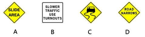 小汽车理论考试 小汽车模拟考试 题库共有300+题,每次随机刷新36题, 年满 18 岁,答对30道题以上以上即为通过。 updated 01/17/2026 1 / 36 下面的哪一个标志告诉你前方路面上即将出现多条铁轨。 B D C A 2 / 36 什么情况下,横穿街道的行人拥有优先权? 仅在街道上划有人行横道线的情况下。 仅在夜间视线不清楚的情况下。 仅在路口的信号灯工作正常的情况下。 无论街道上是否划有人行横道线,行人都有优先权。 3 / 36 以下哪一种行为是不安全的? 在能见度很低的天气下打开车辆的雾灯。 进入弯道前减速。 只关注前方的路段,目不斜视。 在转动方向盘之前扭头观察后面的车流。 4 / 36 如果你遭遇车祸,且有人员伤亡或因车祸造成$1000以上的损失,则必须报警,并写一份书面报告(SR-1)给下列哪一个机构? 机动车辆管理局(DMV) 加州州议会 保险公司 加州高速公路巡逻队 5 / 36 当你接近一个视线不好的”盲(blind)”路口,且路口没有 STOP 或 YIELD 标志,你需要将车速控制在多少? 15英里/小时 10英里/小时 25英里/小时 20英里/小时 6 / 36 如果在路上看到如下标志,应该怎么办? 前方可能有工人正在施工,注意避让。 保持车速不变,但要切换到其他的车道上。 立刻停车,立刻 U 型调头离开当前路段。 立刻减速,因为前方没有路了。 7 / 36 如果你是第一个驾车到达车祸现场并提供救助的人,你应该在哪里驶离路面并停车。 在车祸现场前。 哪里都可以,救人要紧。 经过车祸现场后。 在车祸现场旁边。 8 / 36 右转弯时如果遇到自行车专用车道时应该如何处理? 先通过鸣笛来提醒路口附近的行人注意,然后再转弯。 先提前驶入自行车专用车道,然后再转弯。 转弯前先停车,确认安全后再驶入自行车专用车道。 绝对不能驶入自行车专用车道。 9 / 36 为什么在转弯时应该保持车辆的转向灯始终闪烁? 因为转向灯一旦开启后就不能关闭了,直到完成转弯。 这样可以让其他司机知道你的意图,从而更加安全。 这样可以延长转向灯的寿命 因为这是法律规定。 10 / 36 你与前面车辆的距离已经很近的情况下,突然又有一辆车想要插到你前面;这种情况应该如何应对? 立刻变换到其他车道。 加速前进,不给对方留下空间。 松开油门减速。 猛踩刹车。 11 / 36 当你减速并打开转向灯准备左转弯时,发现对面有车驶来,应该如何应对? 继续转弯,因为你有优先权。 停车等候,让来车先行。 立刻转弯,只要周围没有行人。 加速完成转弯,这样才安全。 12 / 36 绿灯时你接近一个十字路口,此时路口内已经被拥堵的车流阻塞了,你该怎么办 在阻塞消失前,不要驶入路口。 不停的鸣笛以催促那些车辆快点离开路口。 继续前进驶入路口,这样当红灯亮起时你就有优先权了。 原地将车辆掉头,离开这里。 13 / 36 什么情况下你应该主动放弃路权? 当对方车辆的体积比自己更大时。 当别的车辆的车速比自己快很多时。 这样做有助于避免事故发生时。 任何时候都不要这样做,因为这会令其他司机感到困惑。 14 / 36 夏季的雨天中,什么时候的路面最湿滑? 开始下雨的几分钟里。 下雨并打雷的时候。 开始下雨的几小时后。 雨停后。 15 / 36 如果你的驾照上注明了你开车时必须佩戴矫正性镜片,那么你是否可以在丢失眼镜的情况下开车呢? 可以,但仅限于在你熟悉的路段上驾驶。 可以,如果你的近视程度比较低。 可以,但仅限于在紧急情况下。 不可以,没有找到眼镜前你不能开车。 16 / 36 下面的哪一个标志告诉你前方有铁道路口。 C D A B 17 / 36 以下几种关于「驾驶」和「药物」的说法中,最为合理的应该是: 多数用于治疗感冒、头疼的药物都会使人产生嗜睡反应。 只要是医生开具的药物就不会影响驾驶。 药物配合酒精一起使用可以提高疗效。 药物会影响驾驶这种事完全是无稽之谈。 18 / 36 如果遭遇车祸并且其中一方的车辆所受损失超过$1000,此种情况下有必要向 DMV 提出意外报告(SR1)吗? 并非必要,除非有人受伤或死亡。 必须向 DMV 进行报告。 并非必要,除非其中一方的司机没有购买保险。 并非必要,除非肇事的责任方是你。 19 / 36 下列地点中的哪一个是绝对不允许停车的? 私人住宅旁边。 距离铁轨二十英尺处。 坡道上。 残疾人停车位旁边划有白色斜线或交叉线的区域。 20 / 36 前方的路口没有信号灯,而且看不到两侧方向有驶近的车辆,此时你应该以什么车速通过该路口呢? 每小时25英里 每小时40英里 每小时10英里 每小时15英里 21 / 36 这个标志表示: 禁止右转弯。 右前方有急弯,注意减速。 单行道,车流靠右行驶。 所有车辆必须右转弯。 22 / 36 当你在接近路口时发现信号灯为黄色且不停的闪烁,该如何处理? 该路口已经封闭,必须绕行。 加速通过路口。 减速并倍加小心的通过路口。 立刻停车,确认没有危险后再前进。 23 / 36 如果有别的车辆跟随你的车子太近,应该如何处理? 将手伸出车窗不停挥动,示意对方超越自己的车辆。 报警,对方这种行为可能不怀好意。 如果可能,先切换到另外的车道让对方超车过去。 通过突然刹车的方警告对方。 24 / 36 如何看待有些司机在拥堵的高速公路上不停变换车道的行为? 这样开车可以让觉得困倦的司机更容易集中注意力。 这样开车可以提高燃油效率,减少尾气排放。 这样做可以更好的为其他车辆提供汇入车流的机会,有利于安全驾驶。 这种行为可能会导致其他车辆减速,使得原